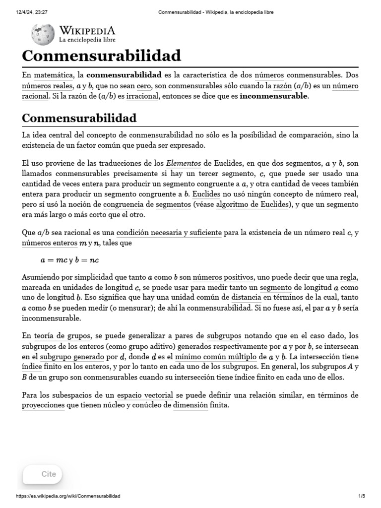 La idea central del concepto de conmensurabilidad no sólo es la posibilidad de comparación, sino la existencia de un factor común que pueda ser expresado.